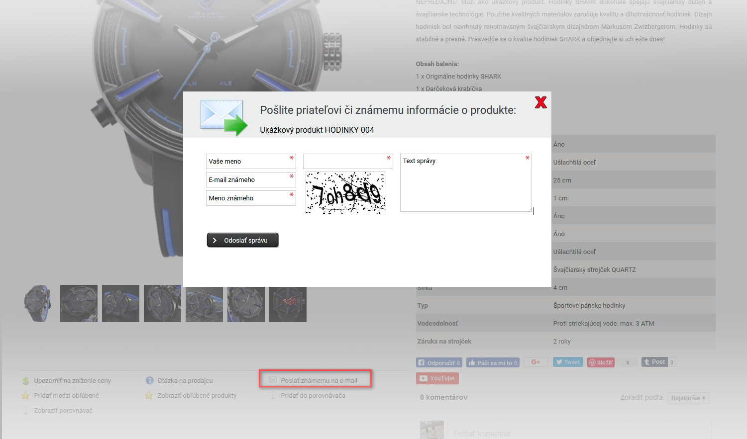 Zaslání produktu známému na e-mail
