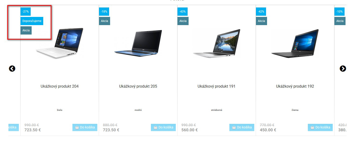 Český zákazník velmi rád nakupuje akciový zboží nebo využívá výprodeje na získání lepší ceny. Je tu také skupina, která si potrpí na novinkách. Každému produktu víte nastavit "visačku", kde při procházení katalogu každý jasně vidí, že se jedná o zajímavé zboží. Pro zvýšení pohodlí si můžete nastavit i datum, kdy se toto označení vypne.