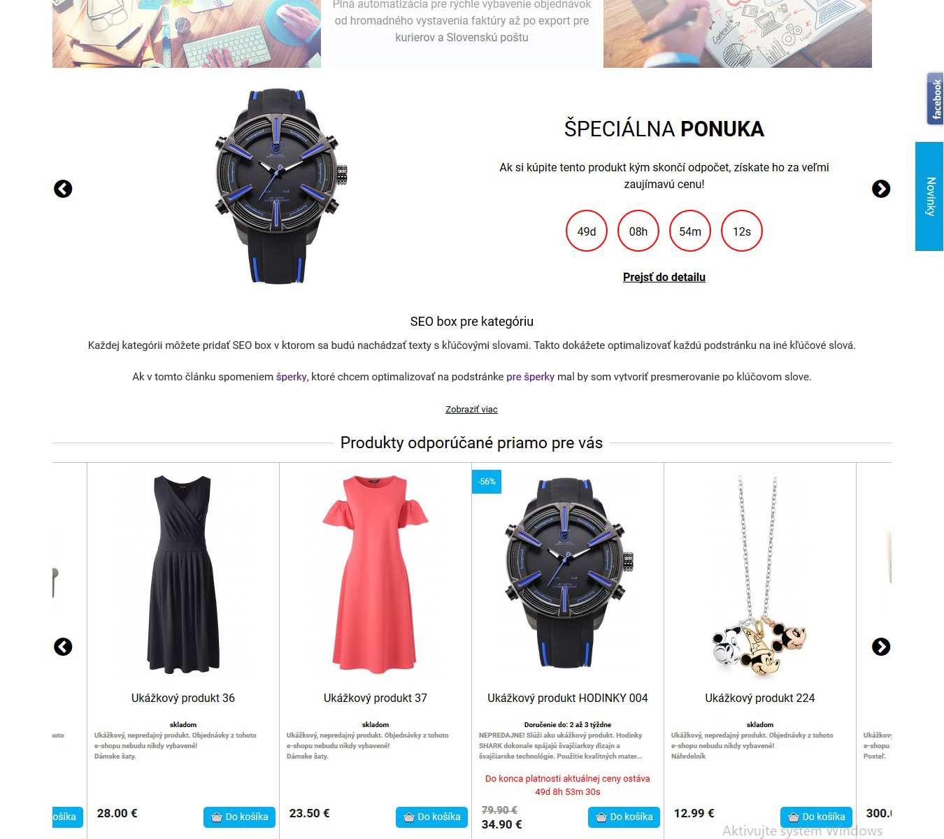 Označení produktu jako akce, novinka, výprodej s možností zadání data platnosti