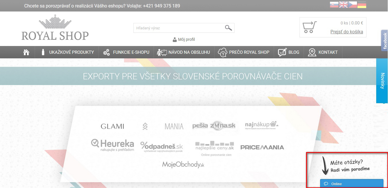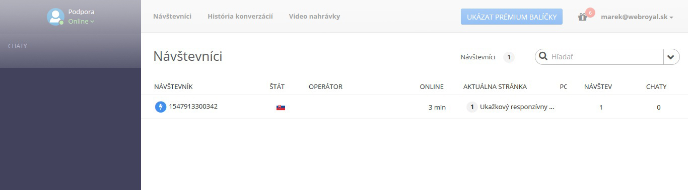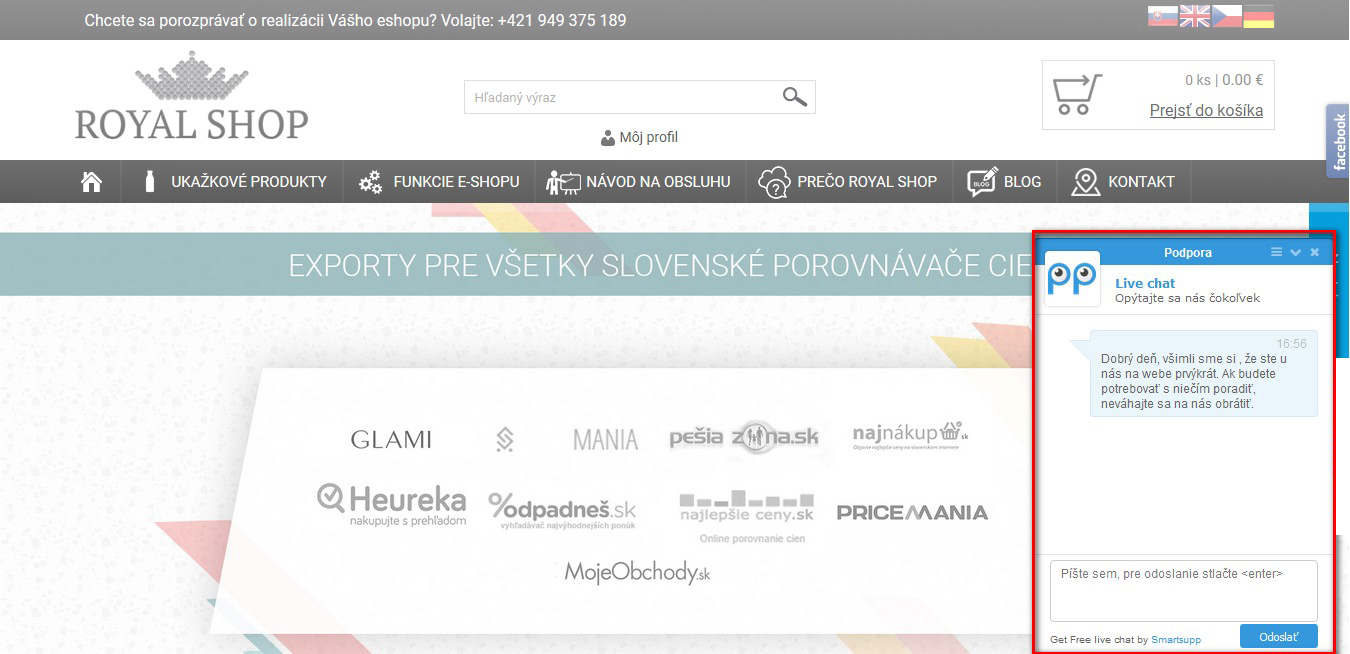 Marketingový nástroj, ve kterém dokážete sledovat pohyb zákazníka po stránce. Když se ho rozhodnete oslovit, objeví se mu okno, kde mu můžete poradit a motivovat ho k objednávce. Systém podporuje tři platformy online chatů, a to Zopim Live Chat, LiveChatoo a SmartSupp. Všechny jsou pro jednoho chatujúceho obchodníka bezplatné a nabízejí podobnou funkcionalitu.