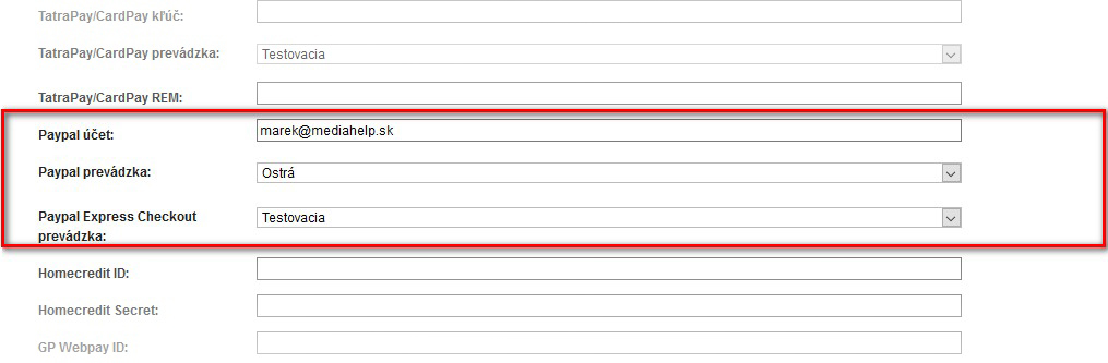 Napojení plateb PayPal a TrustPay