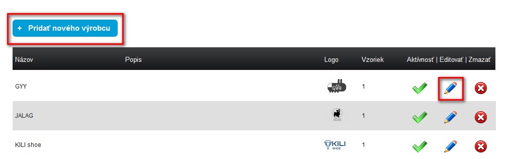 Editujte současného výrobce, nebo přidejte nového