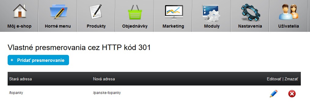 Aby vyhľadácie roboty nenacházely prázdné, již neexistující, stránky, pro které jste získali cenné body v optimalizací, můžete je jednoduše pomocí administrace přesměrovat přes http kód 301. Ten jim řekne, že stará podstránka se přesunula na novou adresu. Oni následně přesunou získané skóre pro pozici na novou podstránku a vy tak o nic nepřijdete.