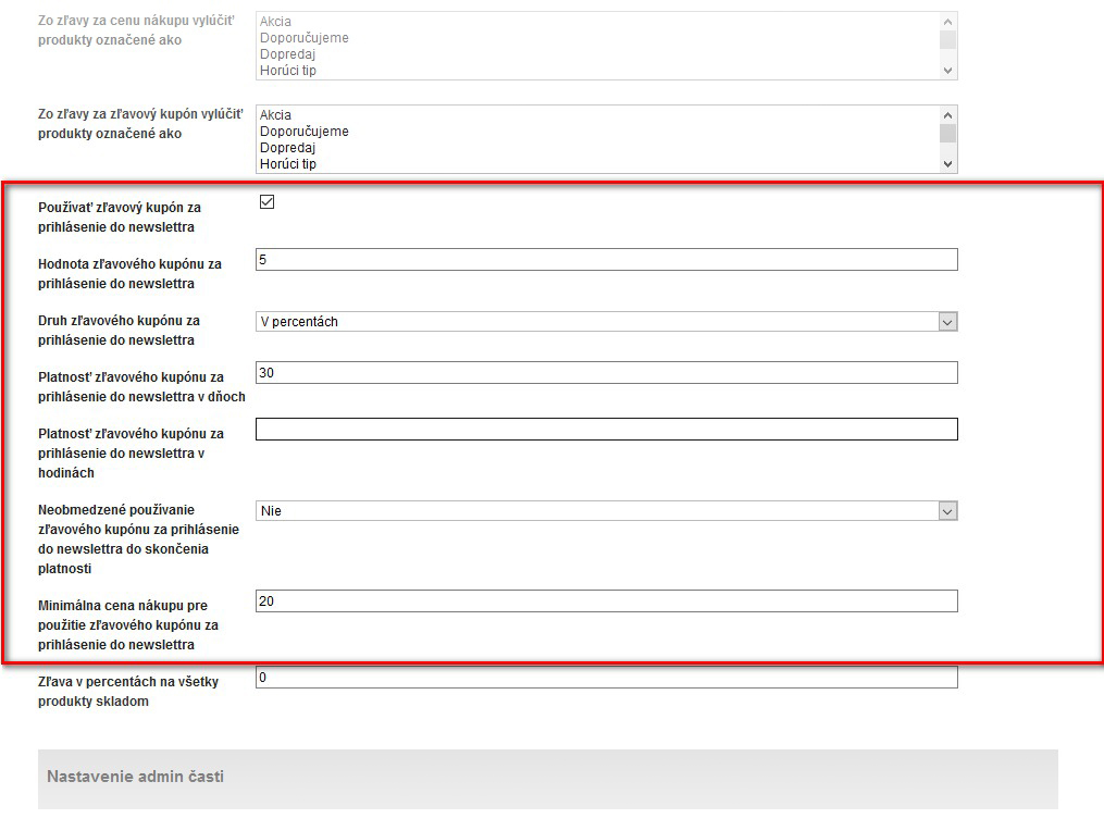 Nastavení slevy za registraci