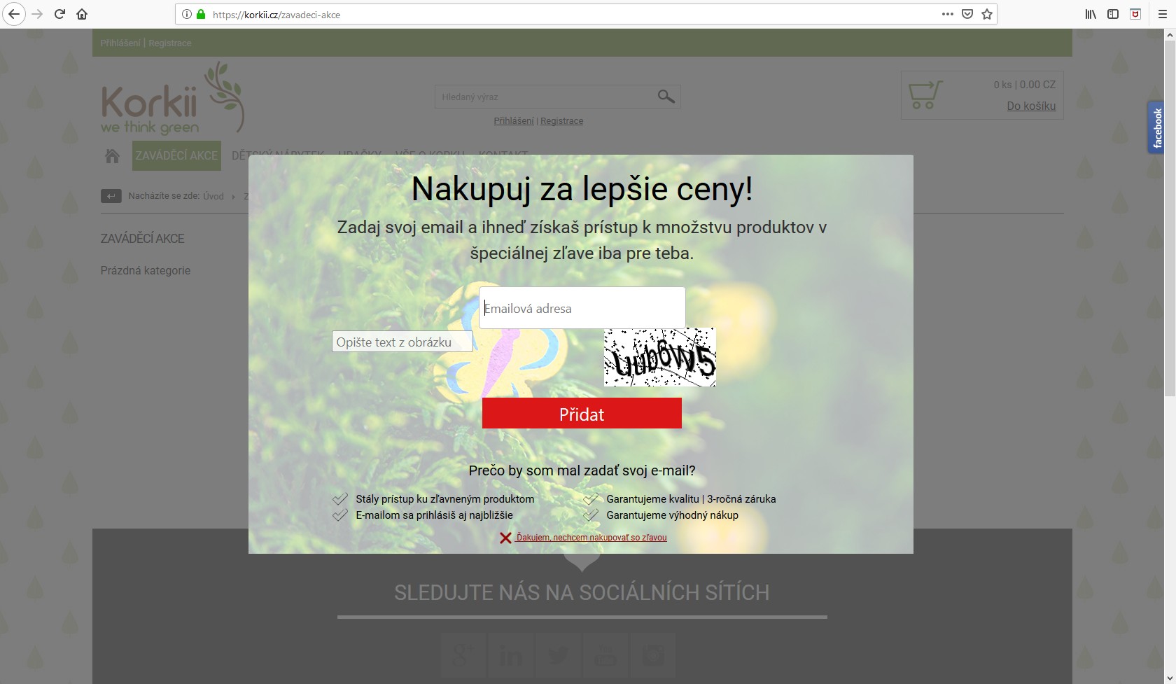 Možnost podmínit vstup do kategorie přihlášením se k odběru novinek